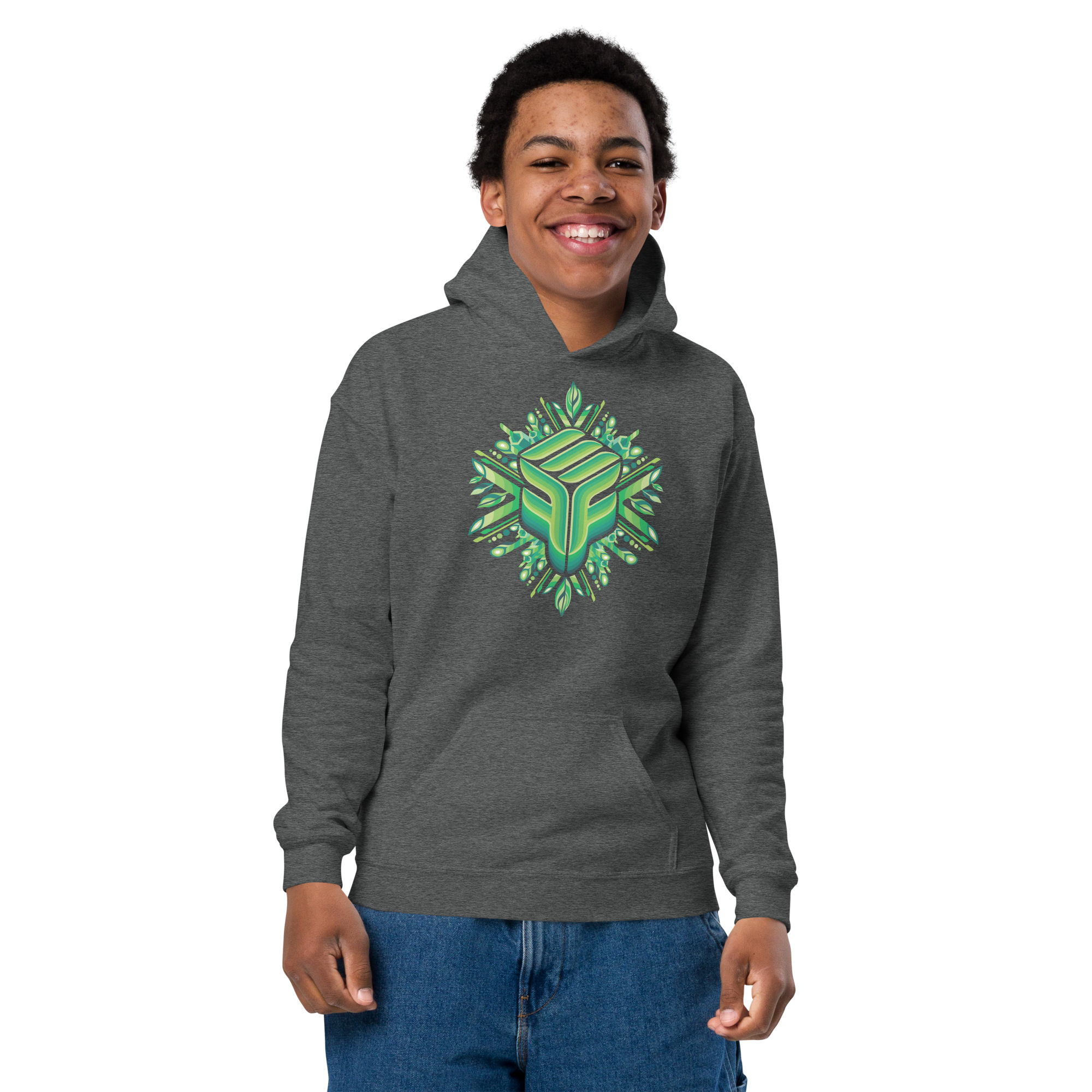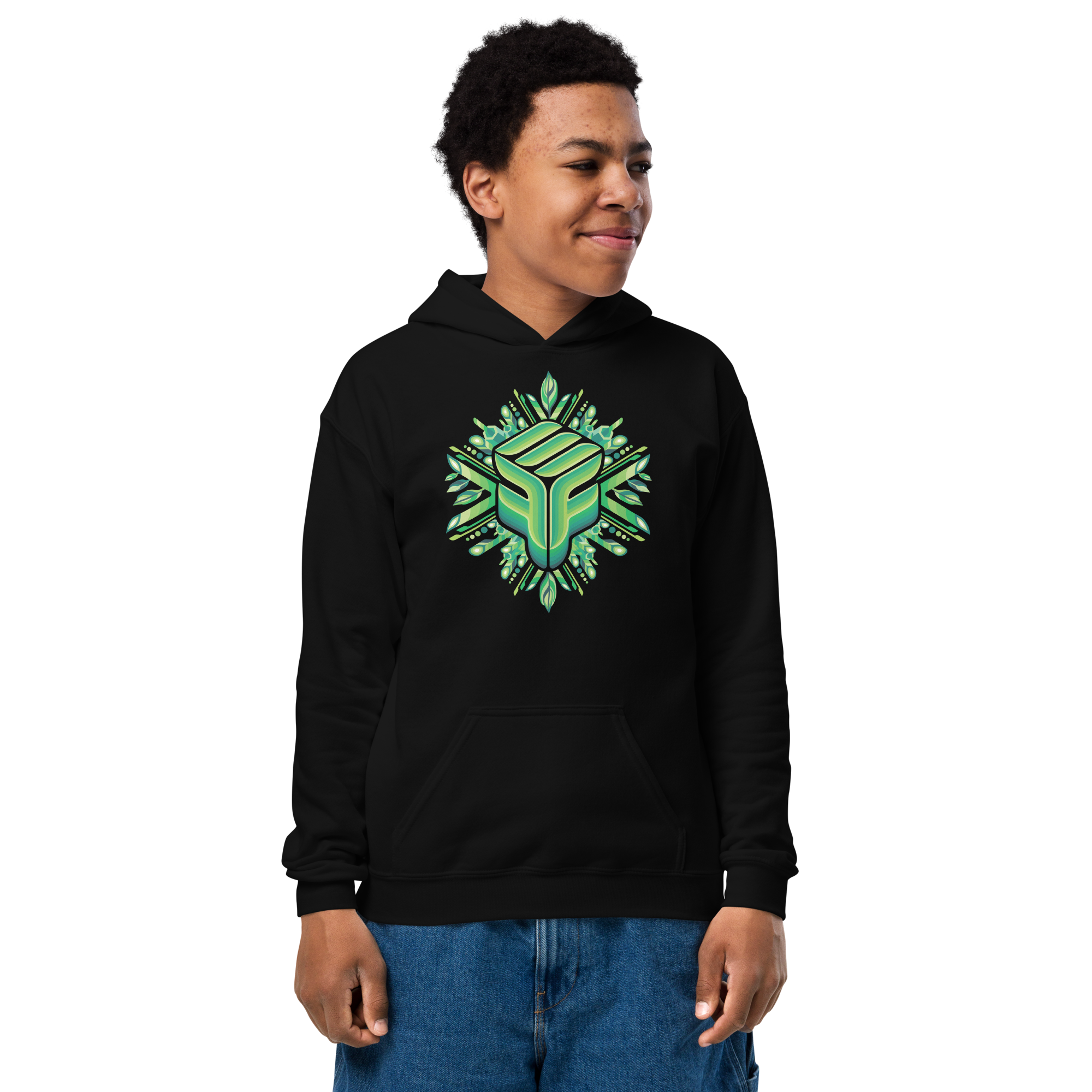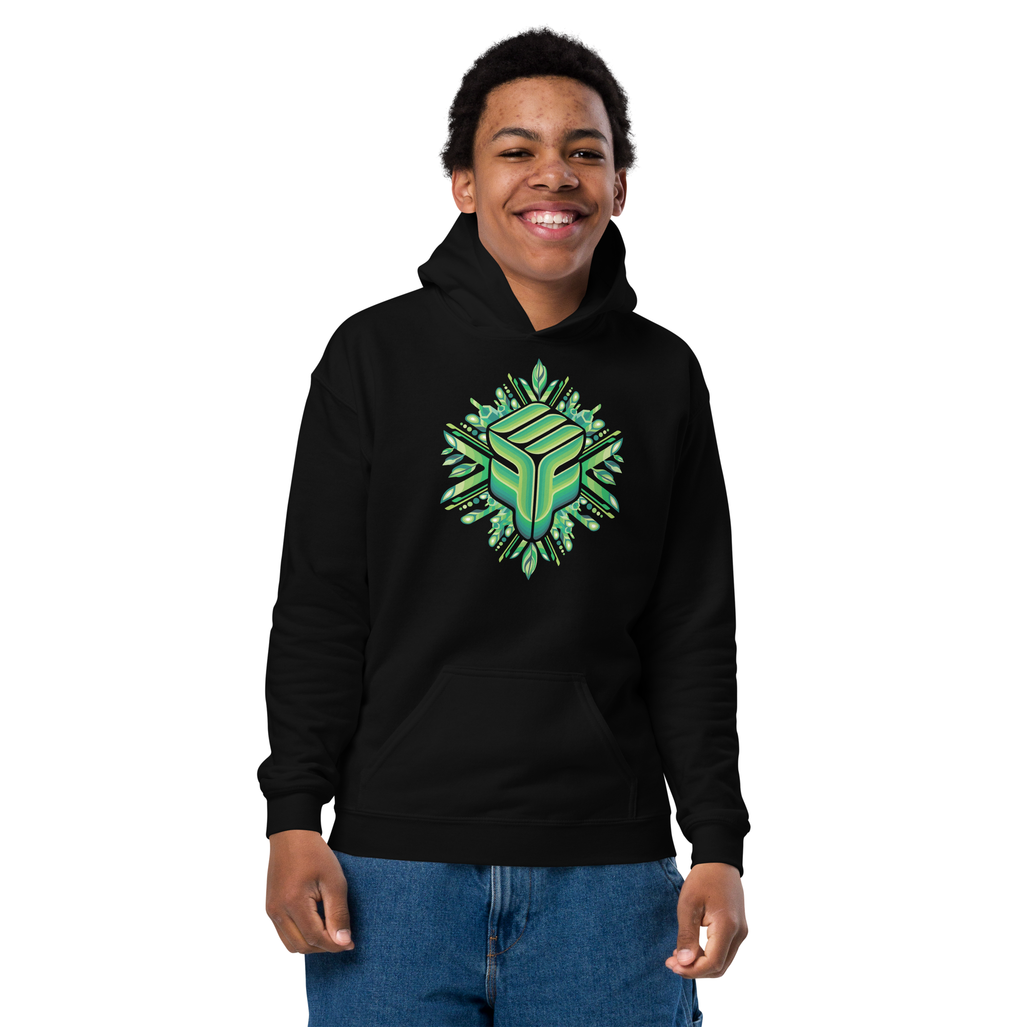 Youth Hoodie - EFF Mandala Green